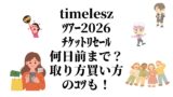 timeleszタイムレスツアー2026当落/当選発表いつ何時にくる?確認方法と倍率も調査ツアー2026の当落・当選発表はいつ?(予想)